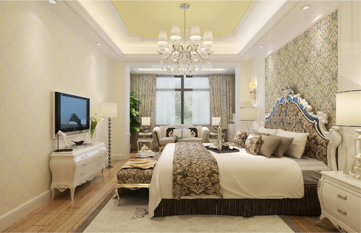 細(xì)膩柔和、色彩自然的絲網(wǎng)印花,襯托了造型背景墻多元素材質(zhì)的應(yīng)用,將房間內(nèi)地面拼花磚、色彩雅質(zhì)的歐式沙發(fā)、高貴的歐式床及床上用品等各種元素及顏色融合到一起。讓歐式風(fēng)格中深沉里顯露尊貴、典雅浸透豪華的設(shè)計(jì)哲學(xué),走進(jìn)了我們的生活,滿足了業(yè)主追求生活品質(zhì)的愿望。