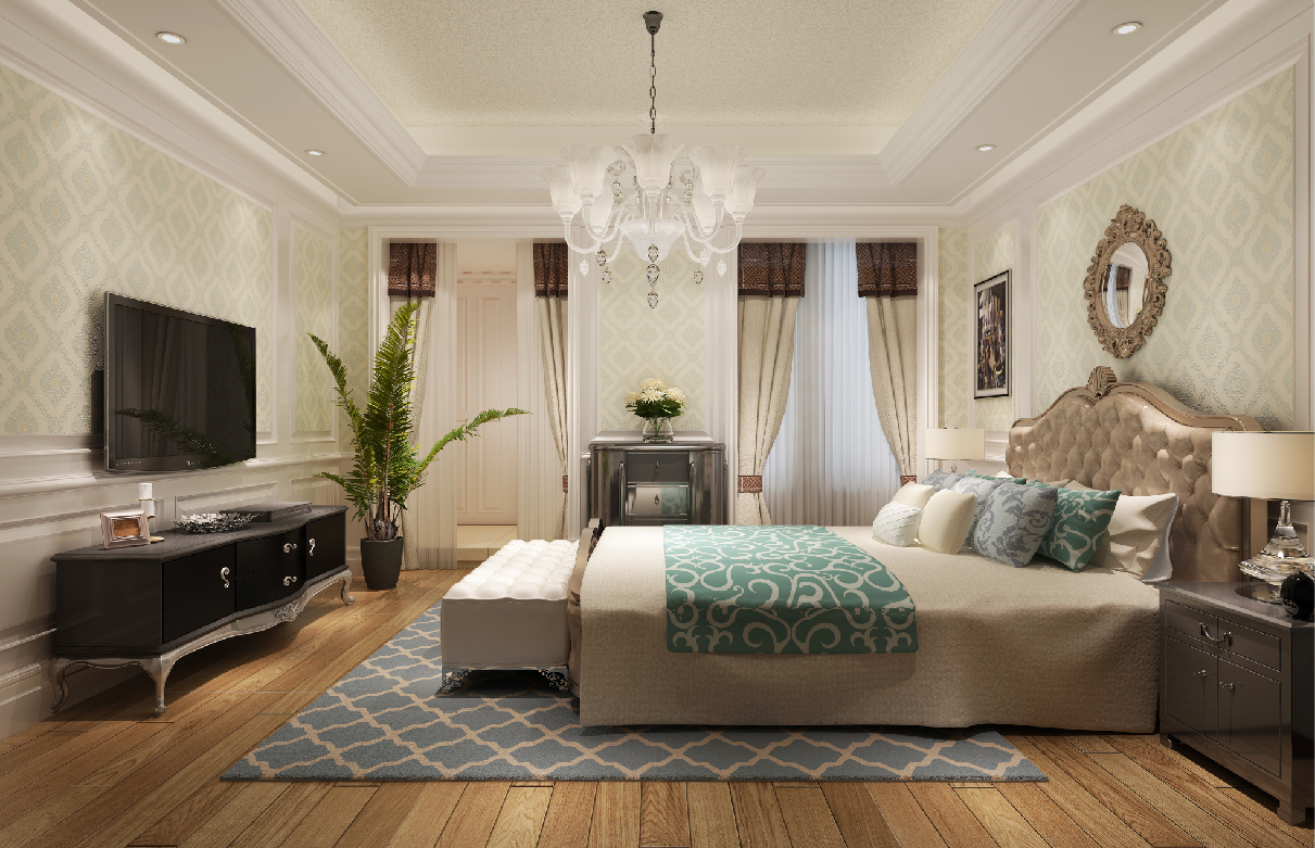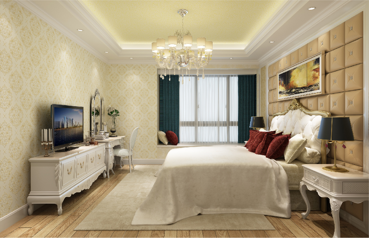 造型背景墻多元素材質(zhì)的應(yīng)用比如:琥珀紅大理石,臥室墻面軟包和硬包,以及簡(jiǎn)潔干凈的白色護(hù)墻板,地面的大理石磚拼花鋪貼,白色系家具點(diǎn)綴的“洛可可”貝殼形圖案,歐式沙發(fā)線條簡(jiǎn)潔、色彩典雅、雍容華貴。墻面絲網(wǎng)印工藝以完美的線條、精益求精的細(xì)節(jié)處理、樸質(zhì)自然的色彩,烘托出房間內(nèi)高貴典雅的貴族氣質(zhì)。